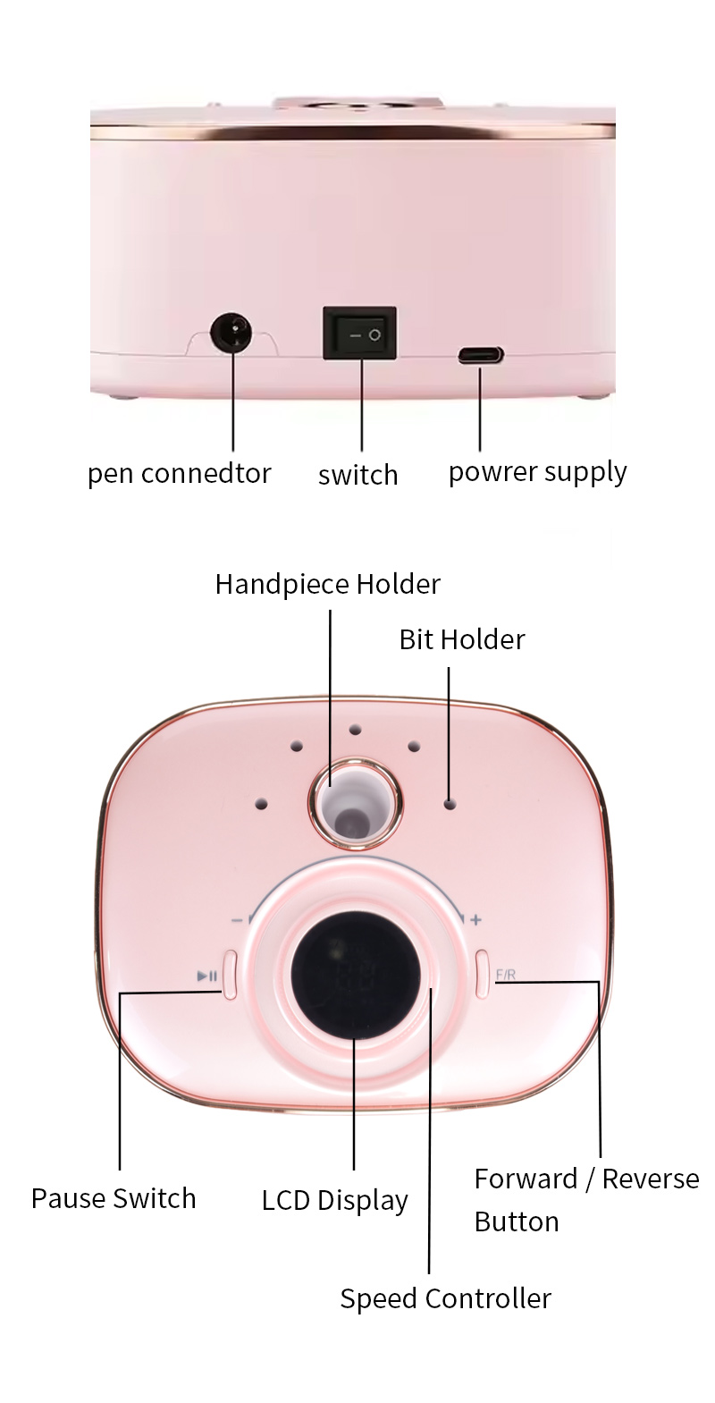 Kuchimba Msumari Kuweka Umeme Kuondoa Gel Kipolishi 65w 35000rpm