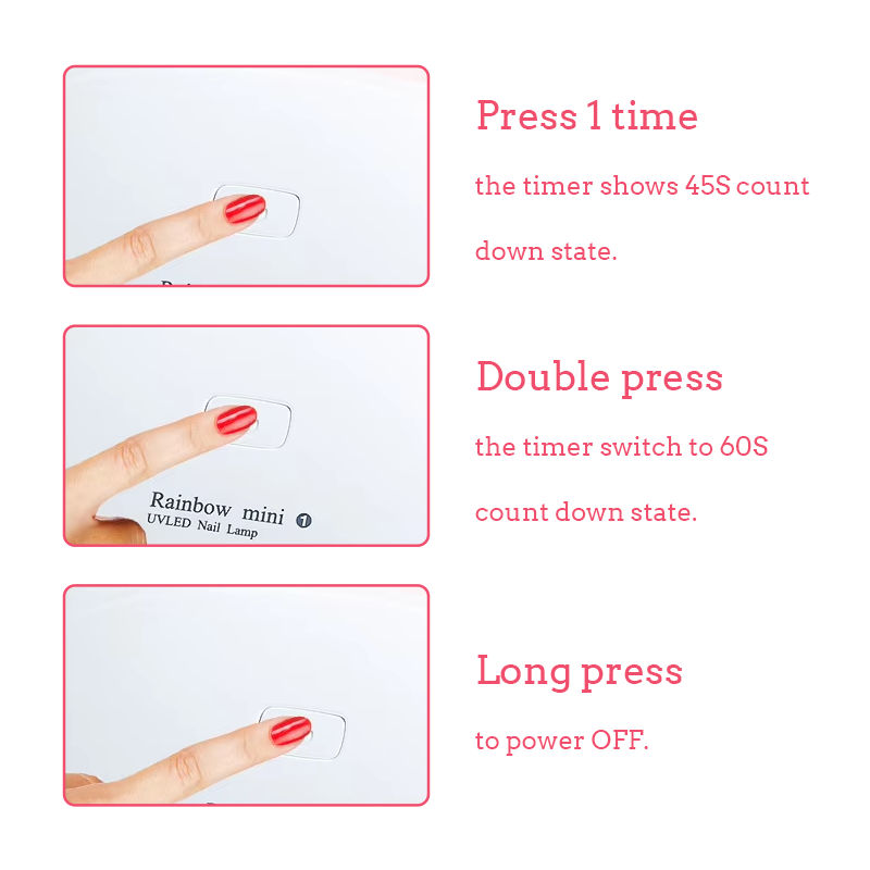 한국어Shenzhen Ruina Optoelectronics Co., Ltd., kama mtengenezaji, msambazaji, na muuzaji nje wa Taa ya Kukausha Misumari ya Gel Compact, inashikilia mara kwa mara falsafa ya kutafuta ubora kamili. Ahadi hii imefanya taa zetu za wambiso za UV zinazotumika nyumbani kuaminiwa na wateja wengi. Muundo wa kipekee, malighafi inayolipiwa, utendakazi bora na bei zenye ushindani mkubwa—haya ndiyo hasa ambayo kila mteja anatarajia, na tunachowasilisha. Bila shaka, huduma ya kina baada ya mauzo ni muhimu kwa usawa.