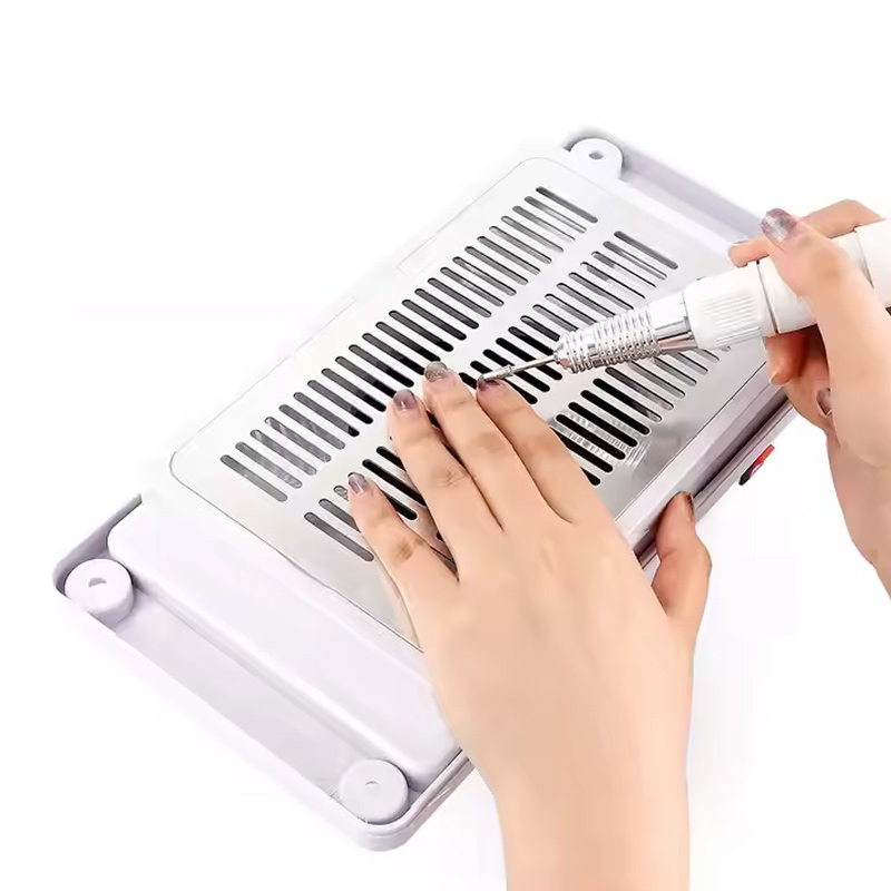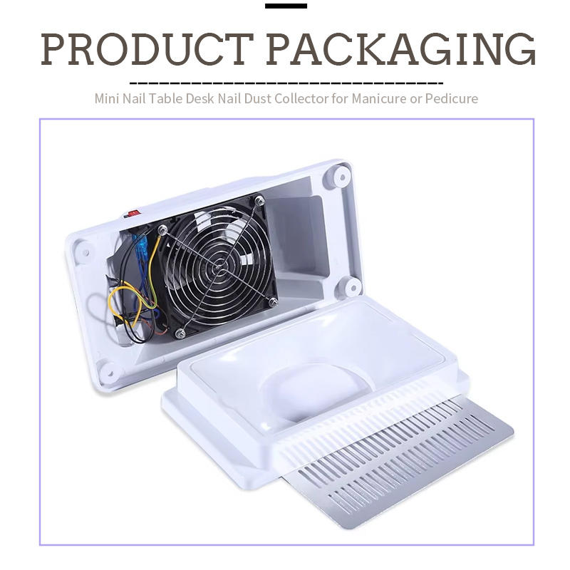TheKikusanya vumbi la Kucha Iliyopachikwa kwenye Eneo-kazi ni kitengo cha uchimbaji wa vumbi kilichojengwa ndani kilichoundwa kusakinishwa moja kwa moja kwenye kituo cha kazi cha saluni. Tofauti na vitengo vinavyobebeka ambavyo hukaa juu ya dawati, muundo huu uliopachikwa huunda nafasi ya kazi isiyo na mshono, isiyo na mrundikano. Hunasa vumbi la akriliki na jeli kwenye chanzo wakati wa huduma za kufungua na kuunda, kuzuia chembechembe zinazopeperuka hewani kutua kwenye nyuso au kuvutwa na mafundi na wateja.