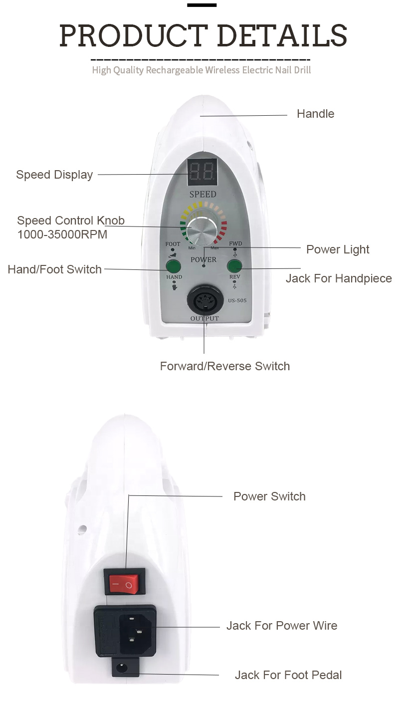 Kipengele cha bidhaa na matumizi ya kasi ya juu ya 702 35000 RPM Nail Remover Electric Nail Faili