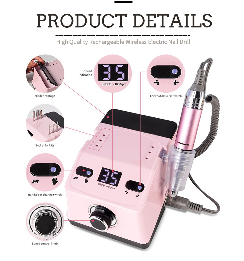 Kuchimba Msumari Kuweka Umeme Kuondoa Gel Kipolishi 65w 35000rpm