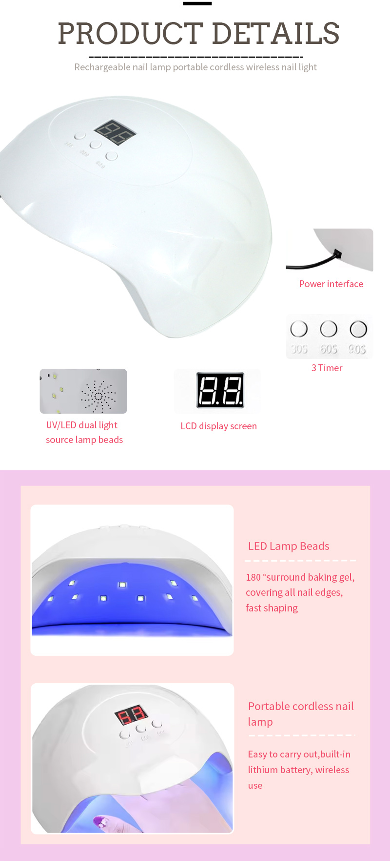 Bidhaa inahakikisha hata kukausha gundi bila shrinkage. Vyanzo vyake viwili vya taa vinatoa inapokanzwa upole kuzuia kubadilika kwa mikono na shida ya jicho, inayofaa kwa mikono na miguu, ikitoa matokeo ya kukausha haraka.