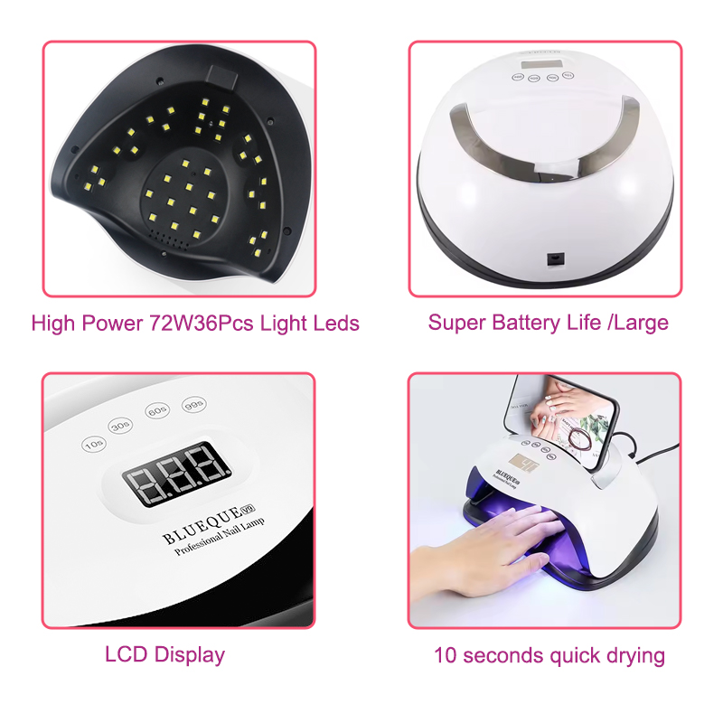 Taa ya msumari yenye ubora wa juu na kazi ya timer inahakikisha hata kukausha gundi bila kupungua. Vyanzo vyake viwili vya mwanga hutoa joto laini ili kuzuia kubadilika rangi kwa mikono na mkazo wa macho, vinavyofaa kwa mikono na miguu yote miwili, hivyo kutoa matokeo ya kukauka haraka sana.