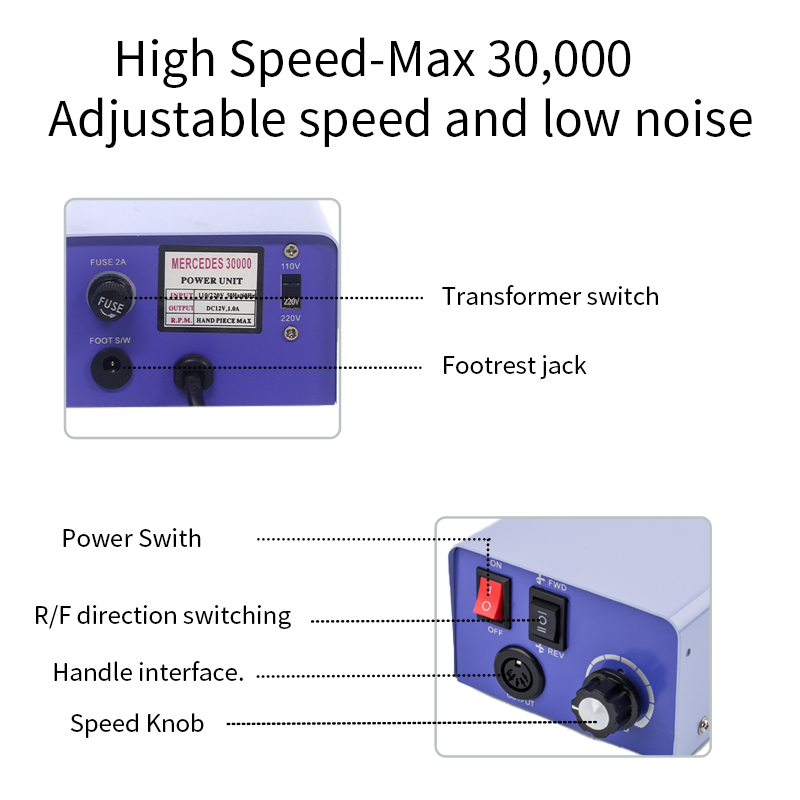 Kuchimba Msumari Kuweka Faili ya Umeme Mtaalamu 65w 35000rpm