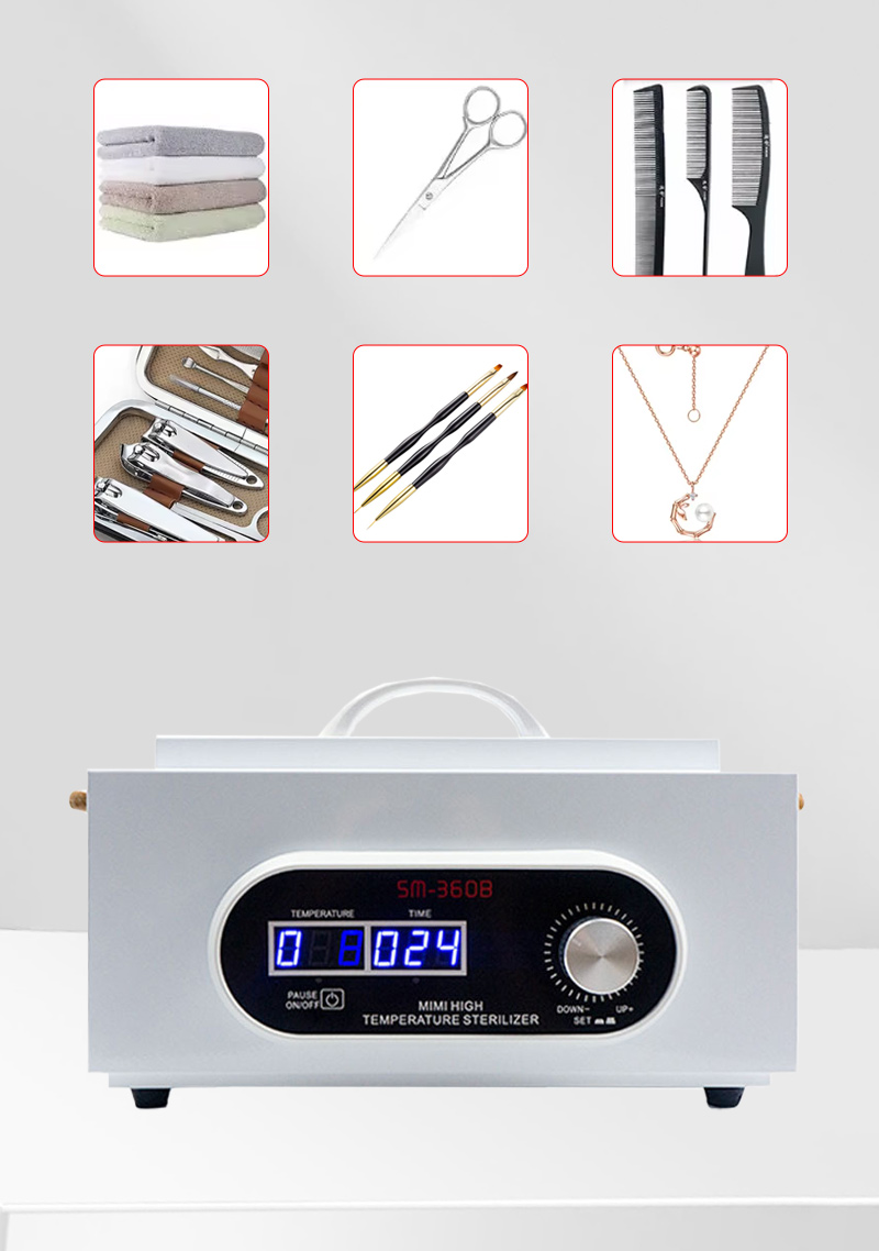 Sterilizer hii kimsingi hutoa joto kupitia pete ya joto, kutumia joto la juu kwa disinfection.