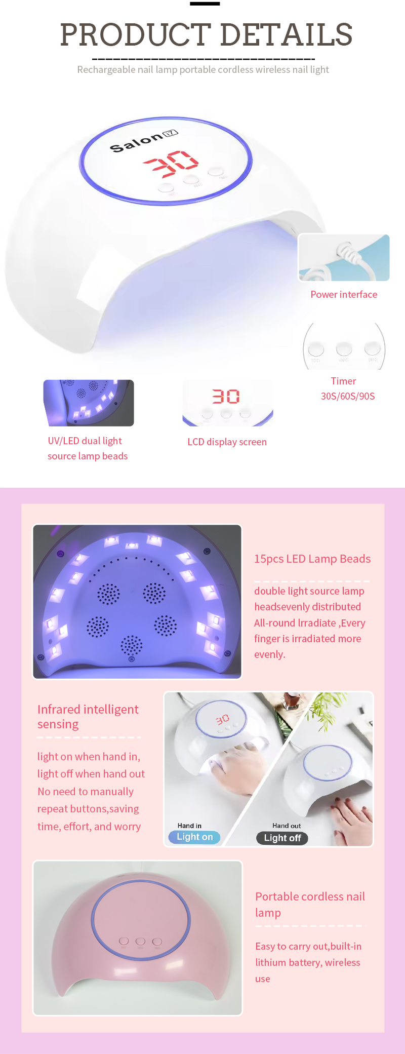 Bidhaa inahakikisha hata kukausha gundi bila shrinkage. Vyanzo vyake viwili vya taa vinatoa inapokanzwa upole kuzuia kubadilika kwa mikono na shida ya jicho, inayofaa kwa mikono na miguu, ikitoa matokeo ya kukausha haraka.