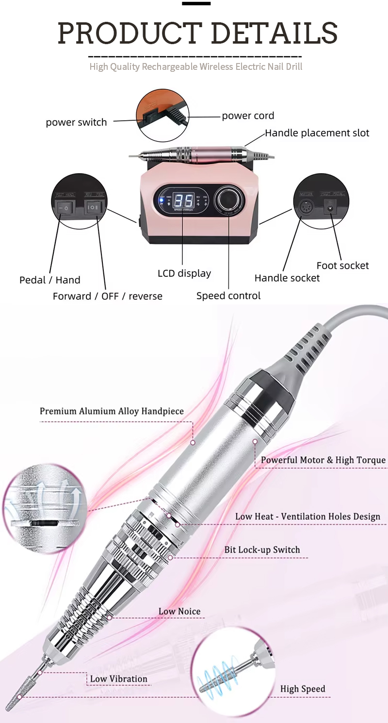 Kuchimba Msumari Kuweka Umeme Kuondoa Gel Kipolishi 65w 35000rpm