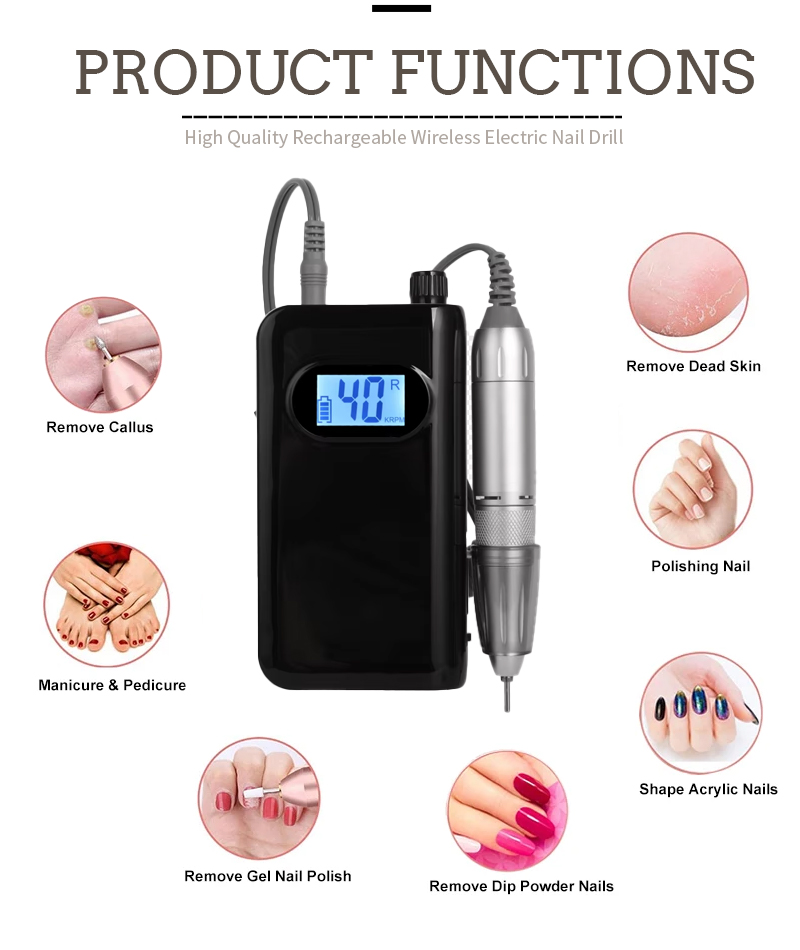Vipengele vya bidhaa na matumizi ya faili ya umeme ya K91 yenye kasi ya 40,000 rpm kwa kuondolewa kwa msumari wa kipolishi