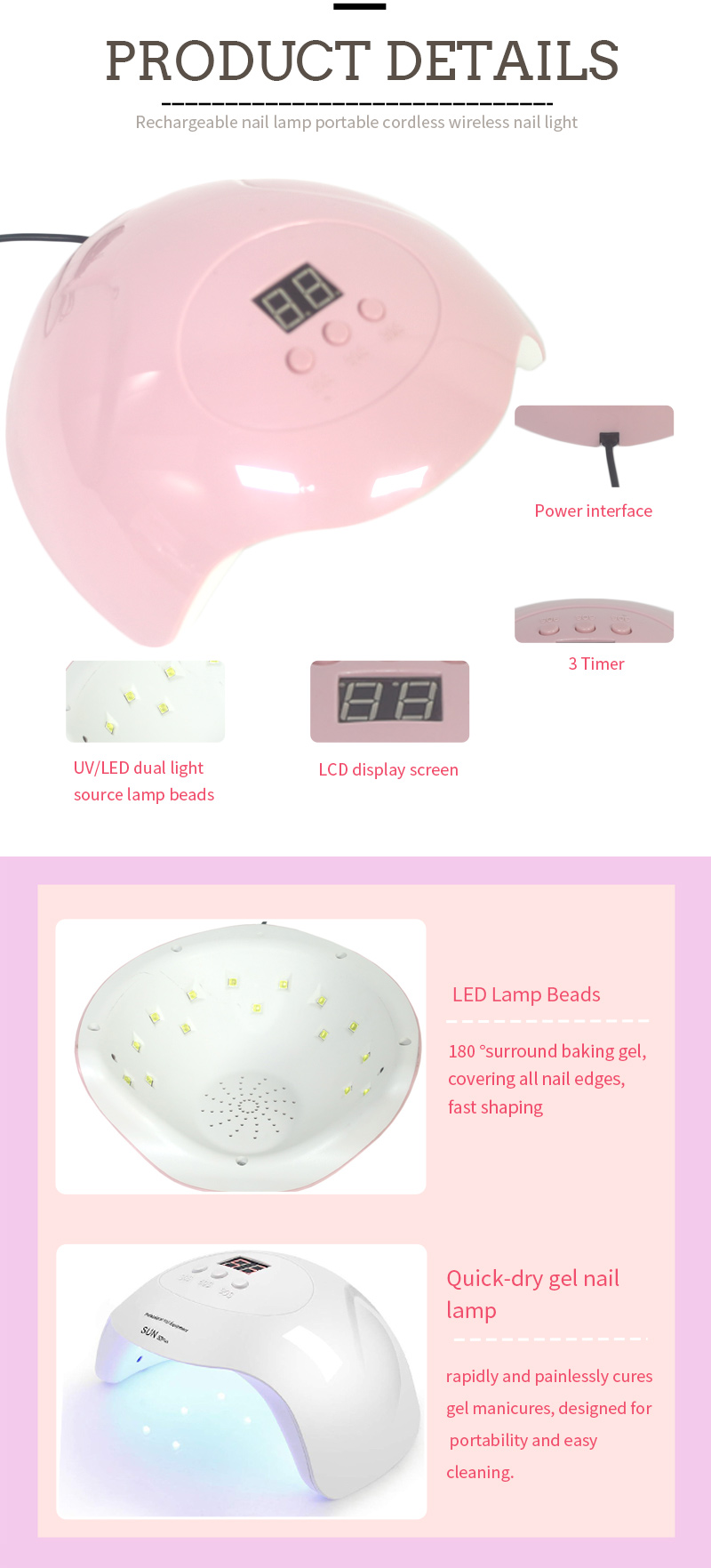 Bidhaa inahakikisha hata kukausha gundi bila shrinkage. Vyanzo vyake viwili vya taa vinatoa inapokanzwa upole kuzuia kubadilika kwa mikono na shida ya jicho, inayofaa kwa mikono na miguu, ikitoa matokeo ya kukausha haraka.