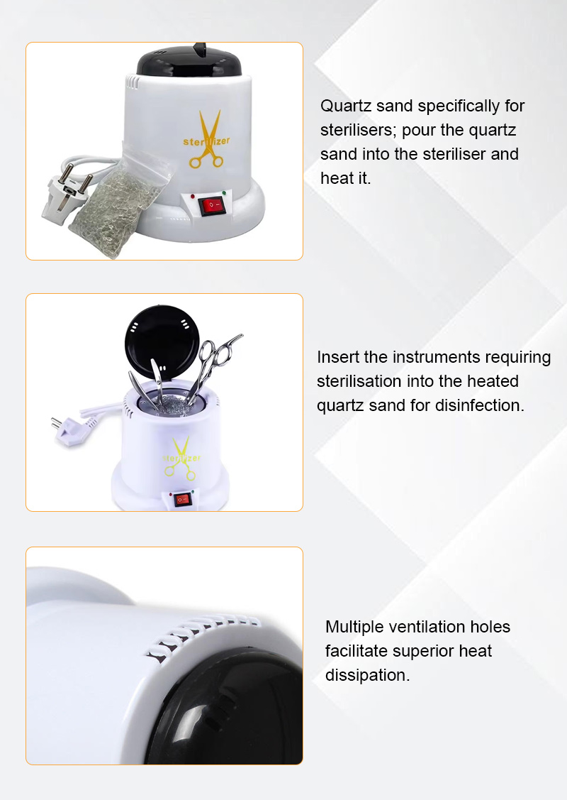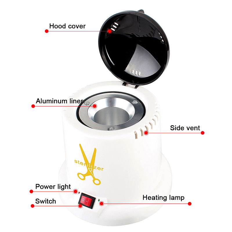 Sterilizer hii kimsingi hutoa joto kupitia pete ya joto, kutumia joto la juu kwa disinfection.
