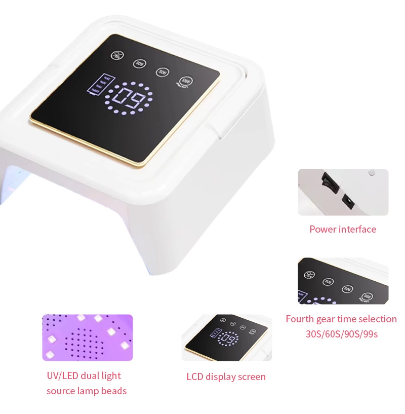 Taa ya kukausha misumari ya mraba inahakikisha hata kukausha gundi bila kupungua. Vyanzo vyake viwili vya mwanga hutoa joto laini ili kuzuia kubadilika rangi kwa mikono na mkazo wa macho, vinavyofaa kwa mikono na miguu yote miwili, hivyo kutoa matokeo ya kukauka haraka sana.