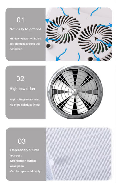 Taa ya Kucha Inayoshikiliwa na Mikono Mitatu yenye Mto ina teknolojia ya kutambua mahiri ya infrared ambayo humulika kiotomatiki mikono inapokaribia na kuzima wakati mikono inaposogea—kuondoa usumbufu wa kubofya vitufe mara kwa mara na kuokoa muda na juhudi. Gundi ya kuoka yenye nguvu ya juu hauhitaji kusubiri kwa muda mrefu, kuokoa muda na jitihada.
