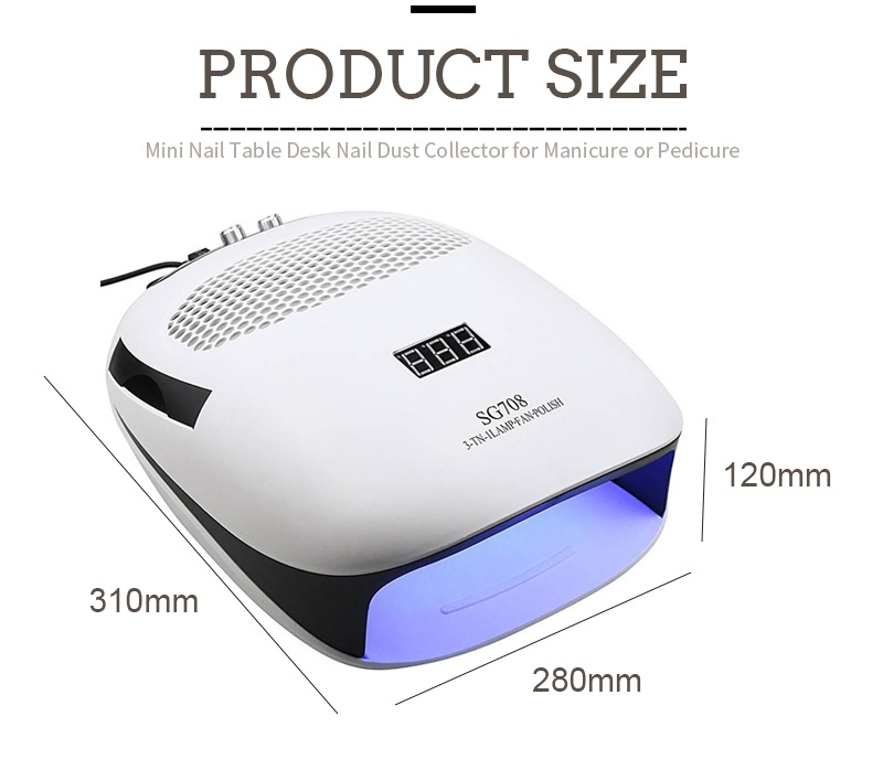 Vipimo vya taa ya misumari yenye mchanganyiko wa mara tatu na mto ni urefu wa 310 mm, 280 mm kwa upana na 120 mm kwa urefu, na uwezo mkubwa na uwezo wa kutumia mikono na miguu yote, ambayo ni rahisi sana.