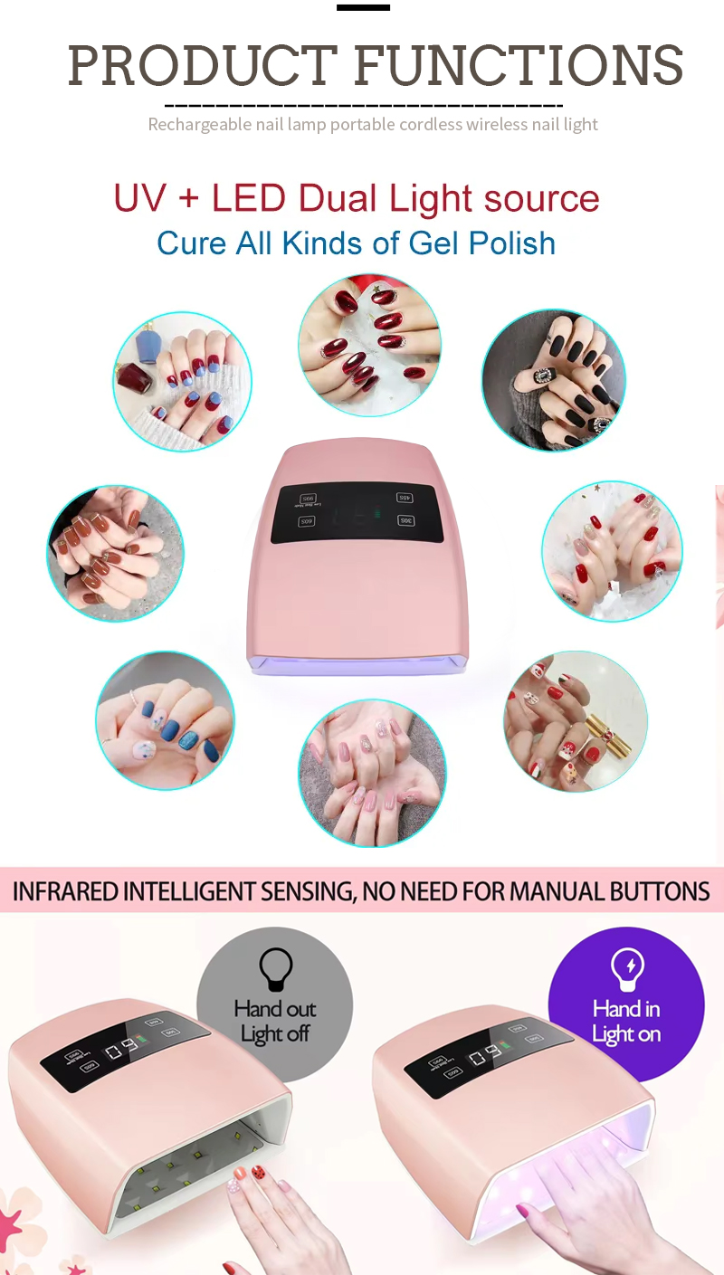 1, chanzo cha taa mbili za taa za LED, zinaweza kuoka gundi ya msumari na gundi ya kazi.