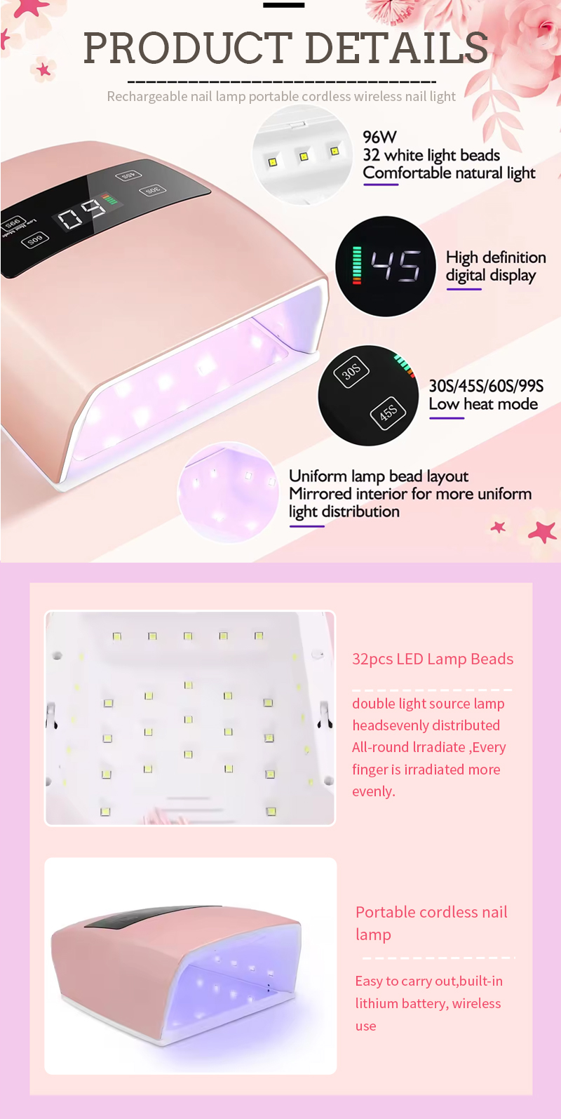 Taa ya Kikausha Kucha ya Gel Inayoweza Kuchaji 96w